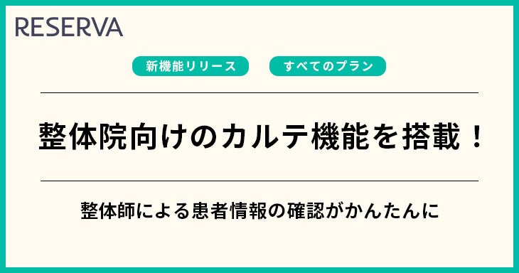 - 「カルテ機能」でさらに便利になった整体院向け予約管理システム「RESERVA」