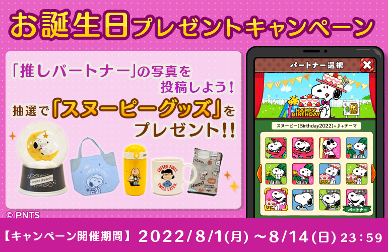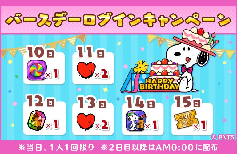 パズルゲームアプリ『スヌーピードロップス』が、スヌーピーの誕生日(8月10日)をお祝いする特別イベントやキャンペーンを開催します。