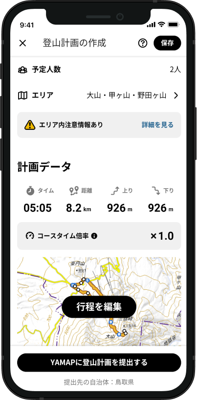 アプリで作成した登山計画書をそのまま鳥取県警察に提出