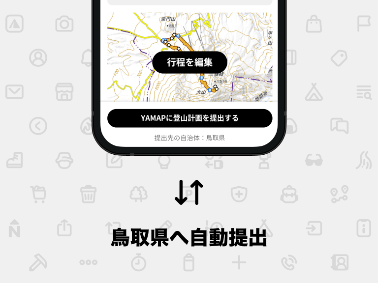 「YAMAP」には、事前にコースタイムを自動計算して無理のない登山計画が作成できると同時に、「YAMAPに登山計画を提出する」を押すと、大切な家族など(緊急連絡先)にも共有できる登山計画&提出機能があります。今回の協定により、YAMAPに登山計画を提出すると、鳥取県警察へ登山届として同時に提出することになります。さらに、「YAMAP」は日本全国25000座以上の山情報を収録しており、登山届ポストがないような里山や低山であっても、計画を提出することが可能です。