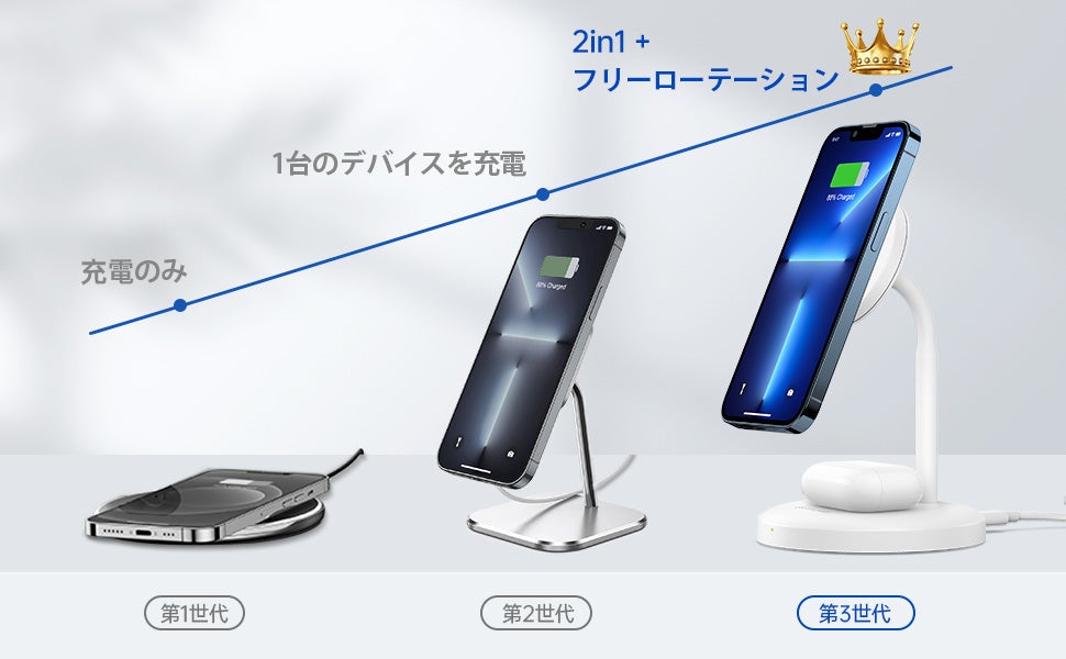 【2in1でスタンド&ワイヤレス充電器】Syncwire磁気ワイヤレス充電スタンドは、携帯電話やイヤホンのホルダーとワイヤレス充電器の両方で、充電しながらビデオチャット、ビデオ/映画鑑賞、ライブストリーミング、オンライン授業などのニーズに応えます。