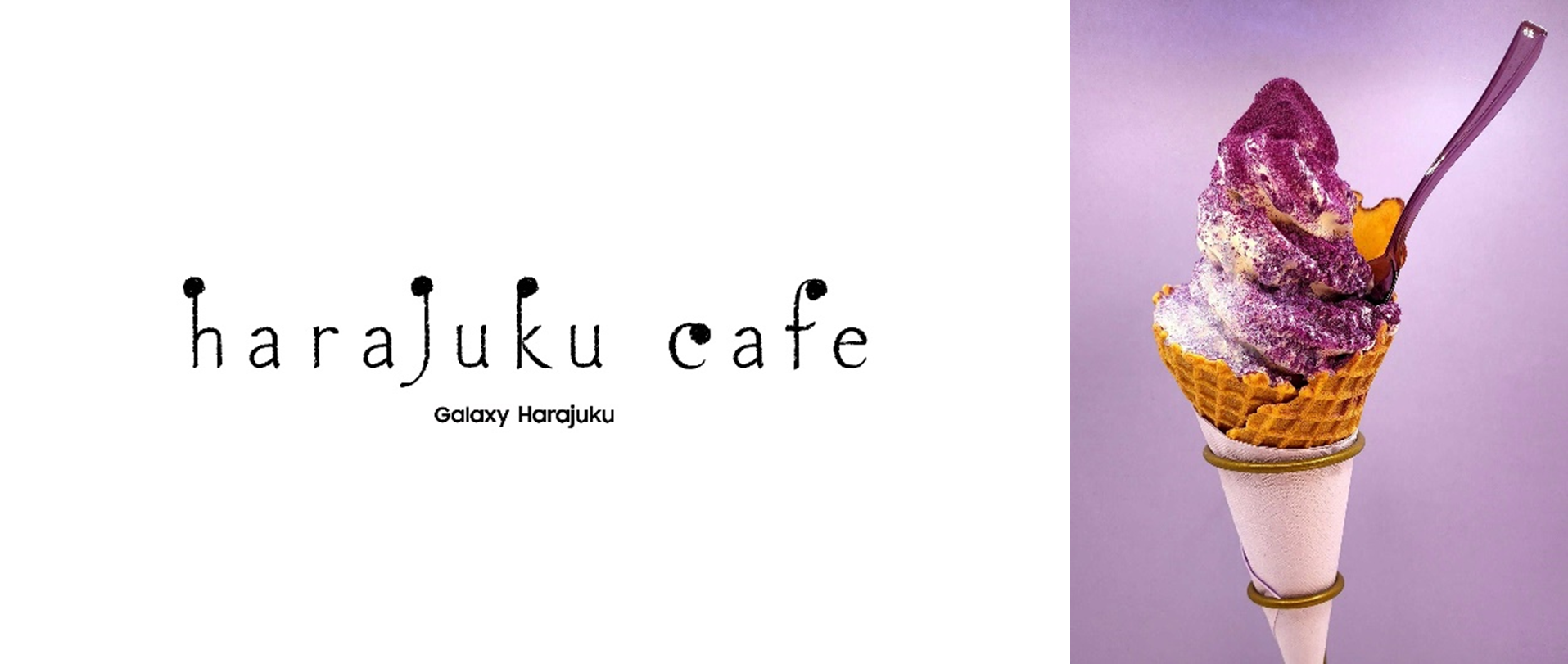 ②Galaxy Harajukuのスタッフに投稿内容をお見せいただくと 、2Fの「Harajuku Cafe」で使える、パープルソフトクリームの無料券をプレゼント