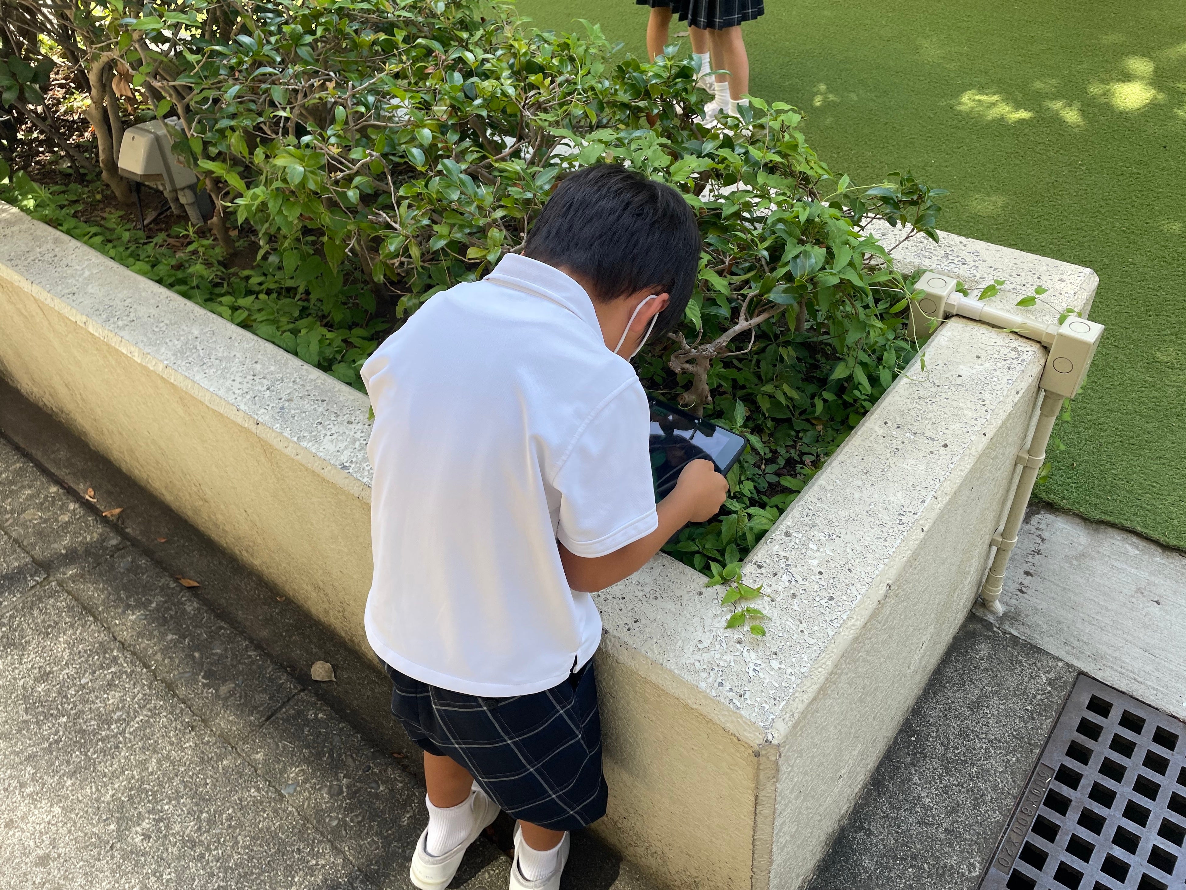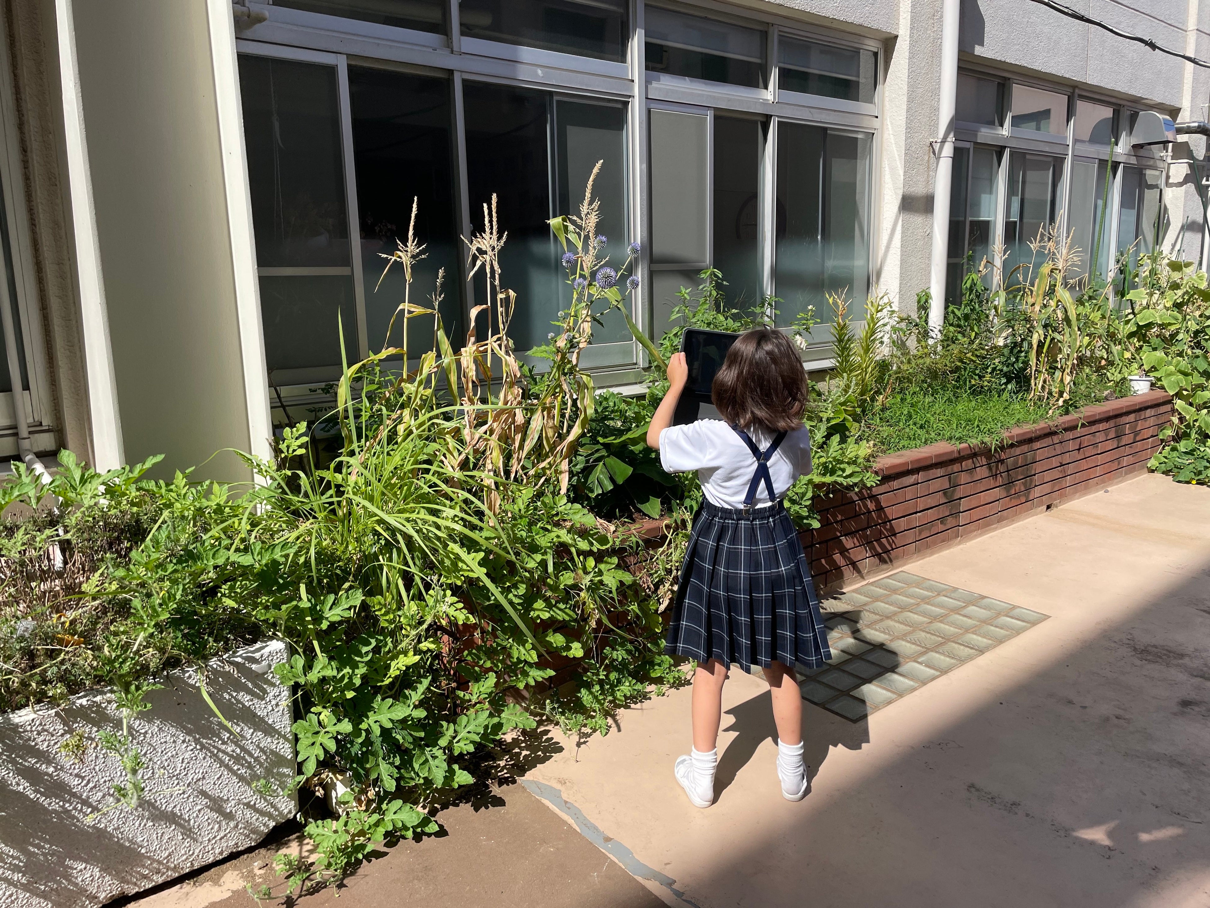 その後、学校の魅力を動画で撮影し、実際に4kizに投稿してみようというお題で、ワークを実践。一人ひとりが学校で配布されているタブレットを持って学校内を散策。校内の植物やグラウンド、アフタースクール内の漫画、児童が作った作品などを撮影し、スタンプやテキストをつけて編集した上で4kiz内に実際に投稿してみました。