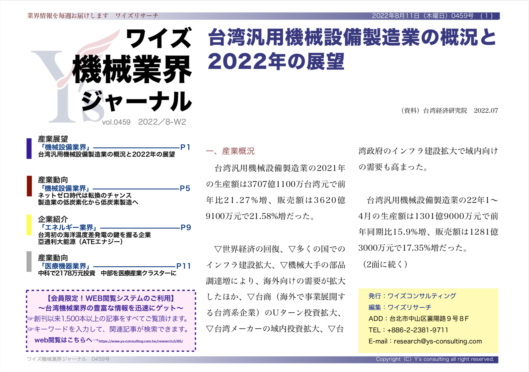 - 台湾汎用機械設備製造業の概況と2022年の展望