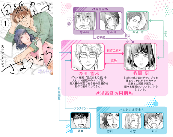 ■「白紙の上でさようなら」1巻表紙及びキャラクター相関図