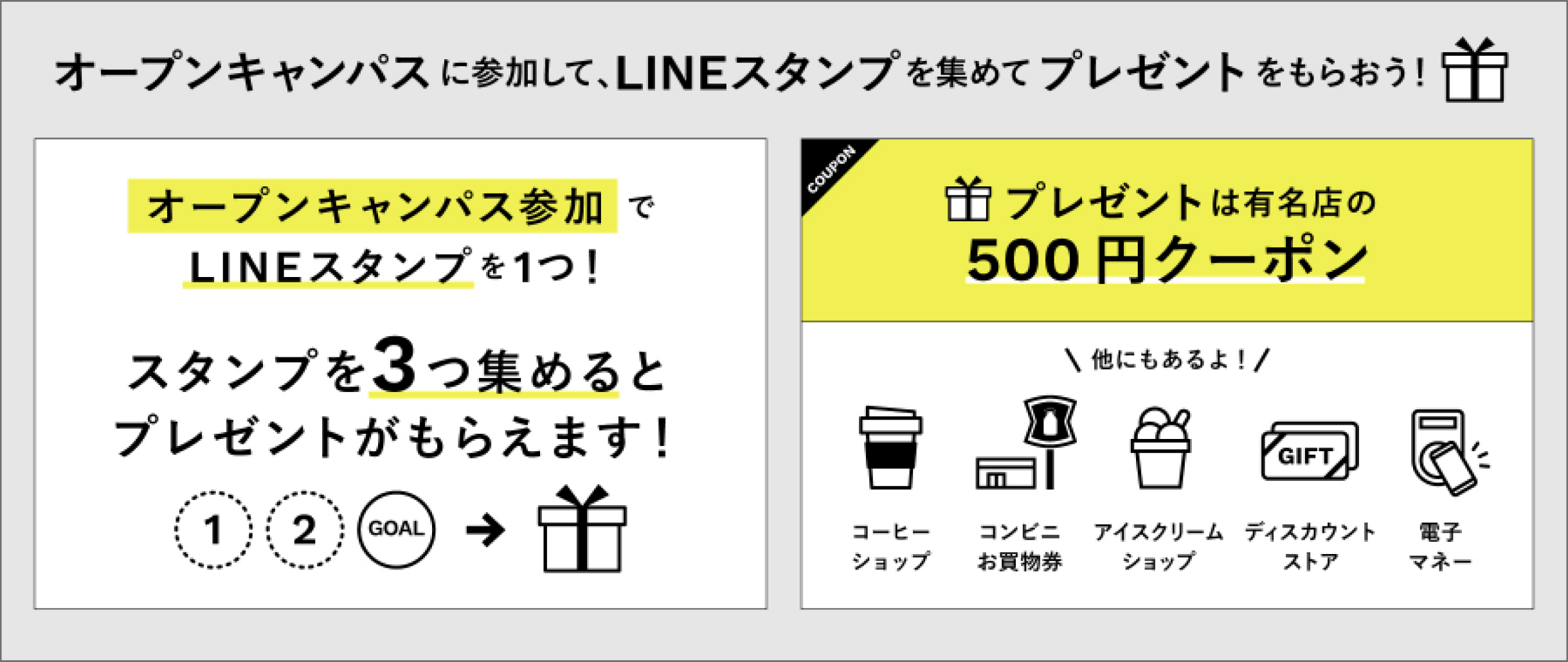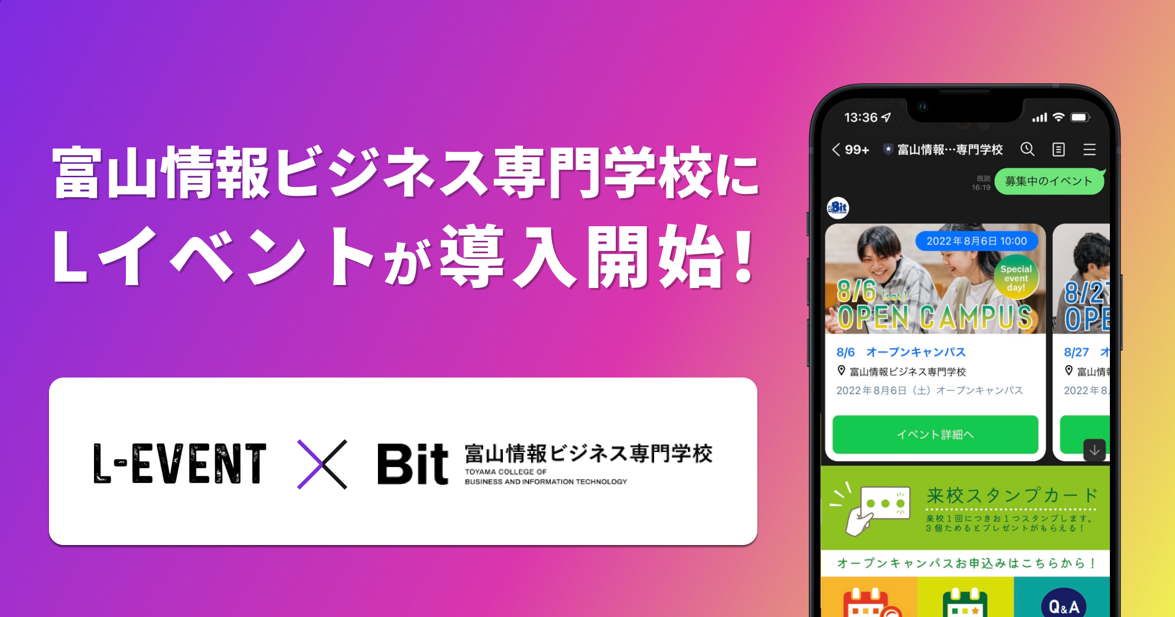富山情報ビジネス専門学校では、Lイベントとあわせて、LINE公式アカウントの「ショップカード機能」を用いた『LINEスタンプラリー』を実施しています。複数回イベントに参加するメリットを用意することで、一回だけのイベント参加では伝えきれない学校の魅力を、より詳しく伝えることができるようになりました。