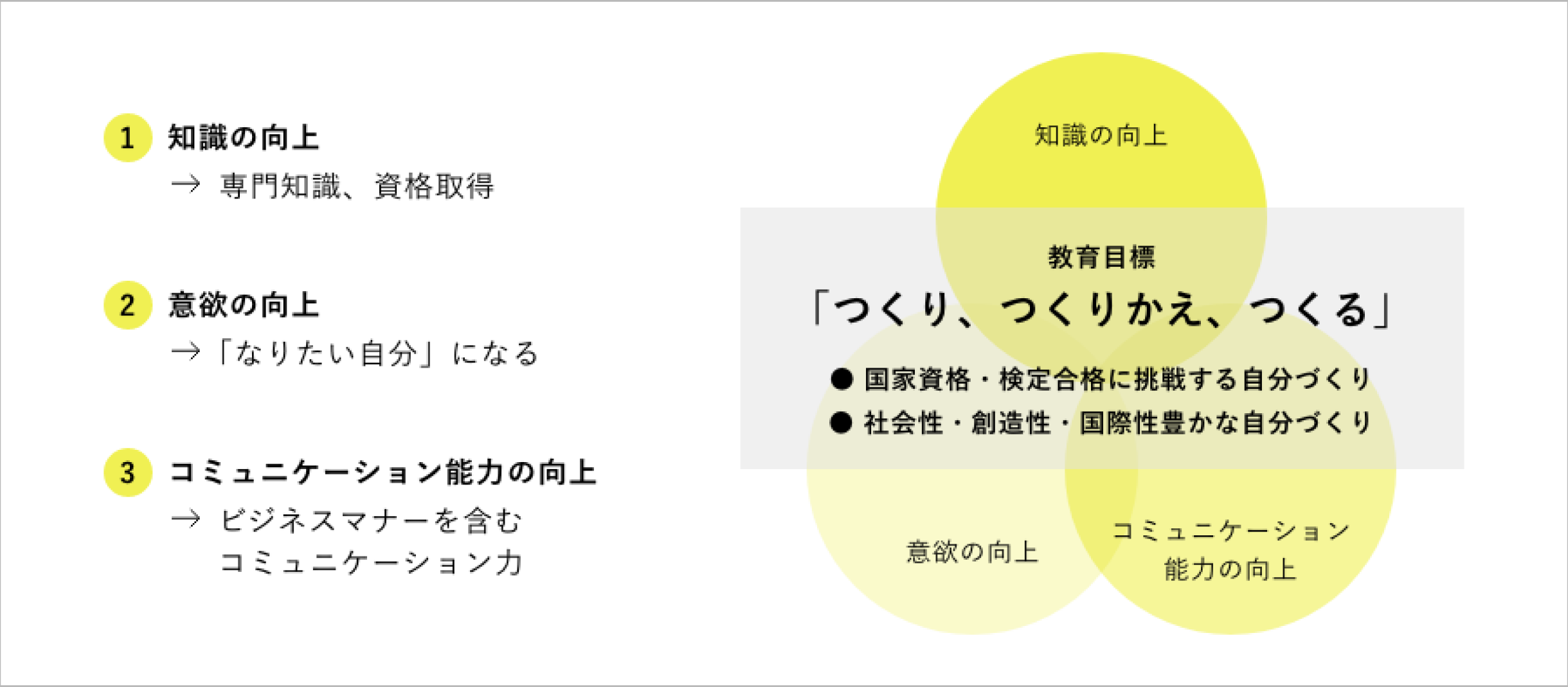これからの急激な社会の変化にも対応できる「自分づくり」を主体的に実践できる人材育成を進めており、そのような対応力を養うためには、専門性(国家資格・検定合格を目標)と人間性(社会性・創造性・国際性)を身に付ける必要があると考えています。地域課題と向き合いながら学習を進め、地域のニーズに応じた、次世代の地域を担う人材を輩出することによって地域に貢献できる。そんな富山情報ビジネス専門学校でありたいと考えています。