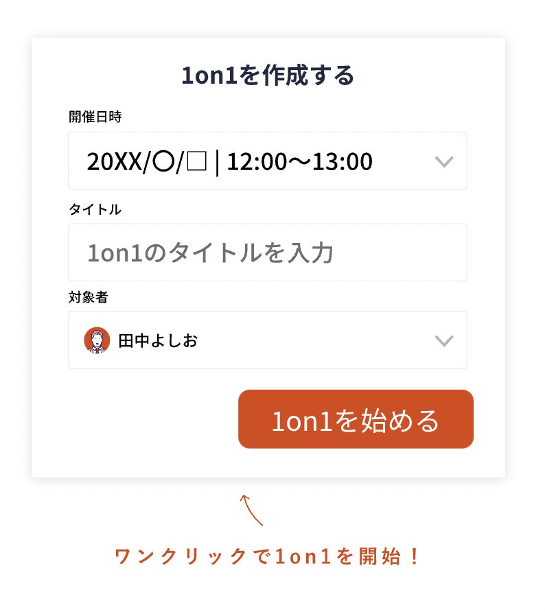 1on1を始めるボタンを押すだけでカンタンにスタート。スケジュールとアジェンダを事前に登録できます。