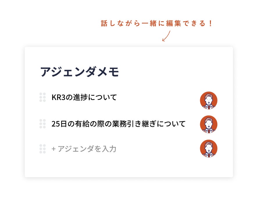 1on1の会話内容は共同編集機能を使って、同じ画面を見ながらメモし合うことができます。