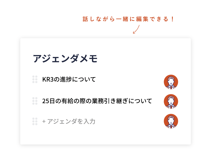 1on1の会話内容は共同編集機能を使って、同じ画面を見ながらメモし合うことができます。