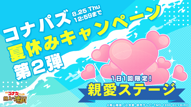 - ■コナパズ夏休みキャンペーン【第2弾】 親愛度が9,999手に入る限定ステージが登場!
