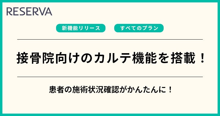 - 「カルテ機能」でさらに便利になった接骨院向け予約管理システム「RESERVA」