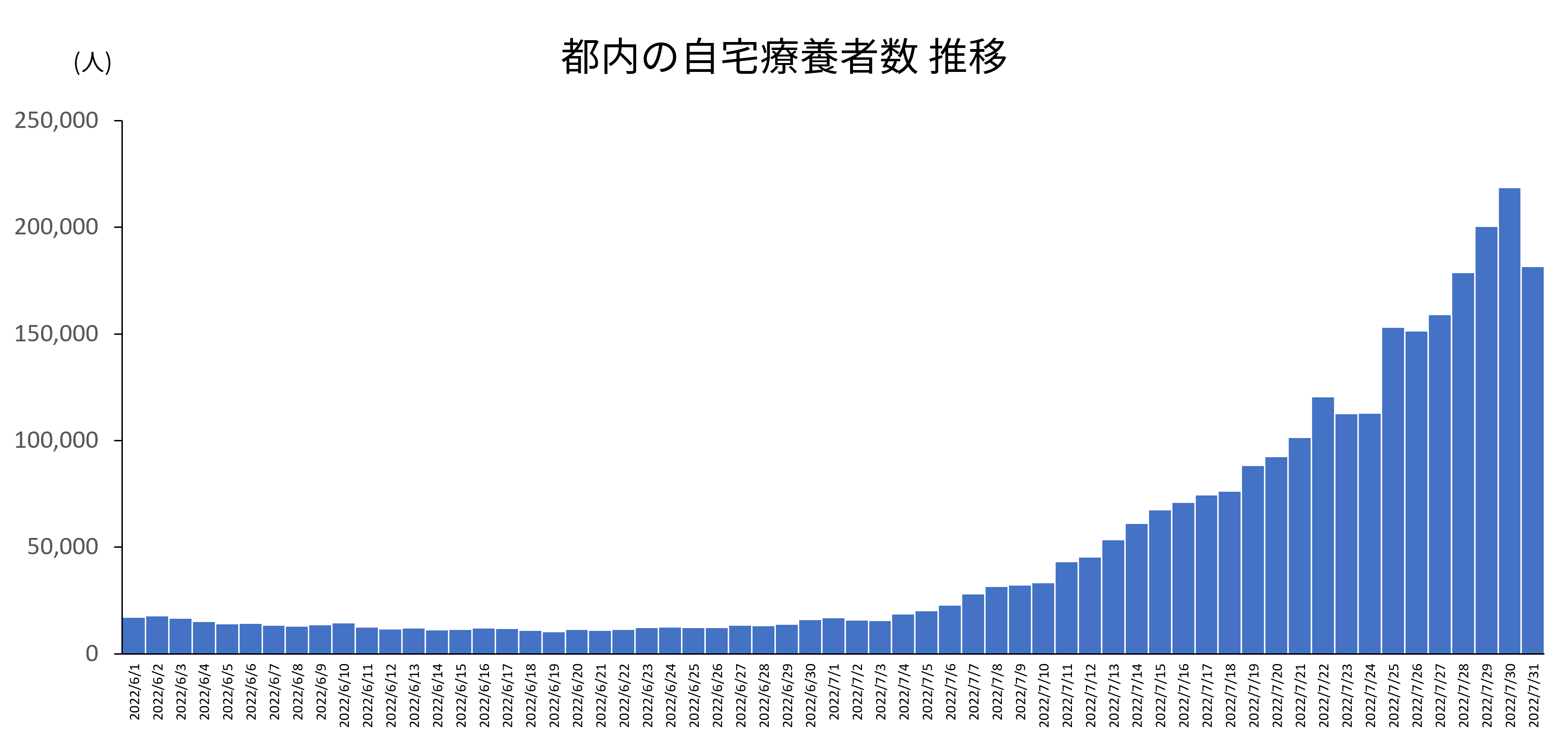 都内の新型コロナウイルス陽性者数は、8/3時点で累計2,258,473人。自宅療養者数は7月から急激に増加し、過去最高値を記録しました*。