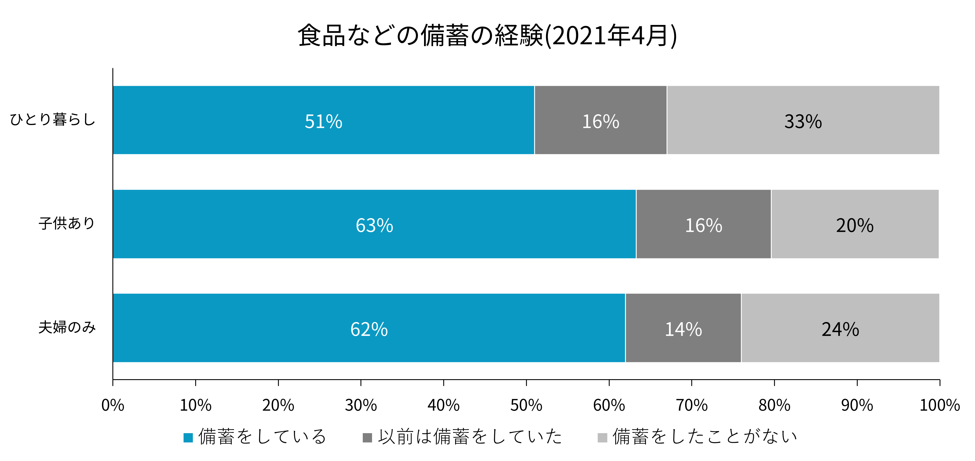 また、約半数の世帯では食料品などの備蓄をしていない状況です。