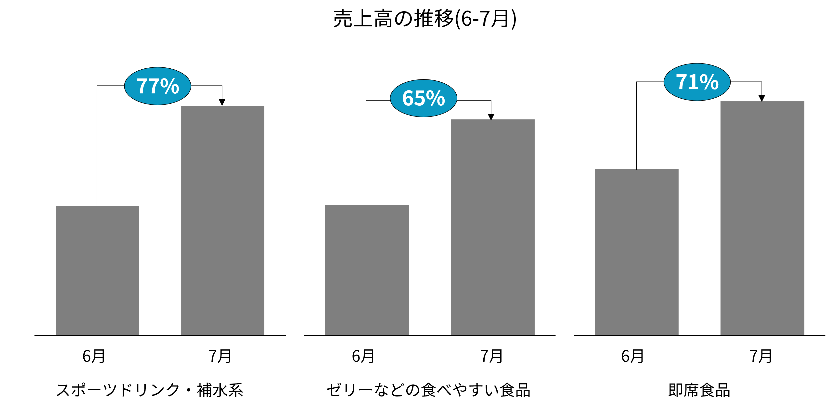 7月に自宅療養者の増加に応じて、スポーツドリンク・補水系の飲料水、ゼリーなどの食べやすい食品、レトルト食品などの即席食品の売上高が増加しました。