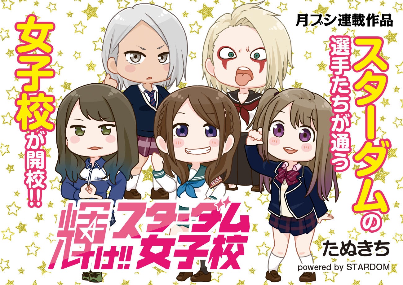 あらすじ:スターダムの選手たちが通う、中高一貫教育の私立女子校が開校!! 生徒会集団「STARS」、スポーツ特待生チーム「Queen’s Quest」、スケバン軍団「大江戸隊」、最強ギャルサー「Donna del Mondo」、アイドル候補生「COSMIC ANGELS」――各ユニット入り乱れて、果たしてどんな学校生活が繰り広げられるのか!? いま始業のゴングが鳴る!!! powered by STARDOM