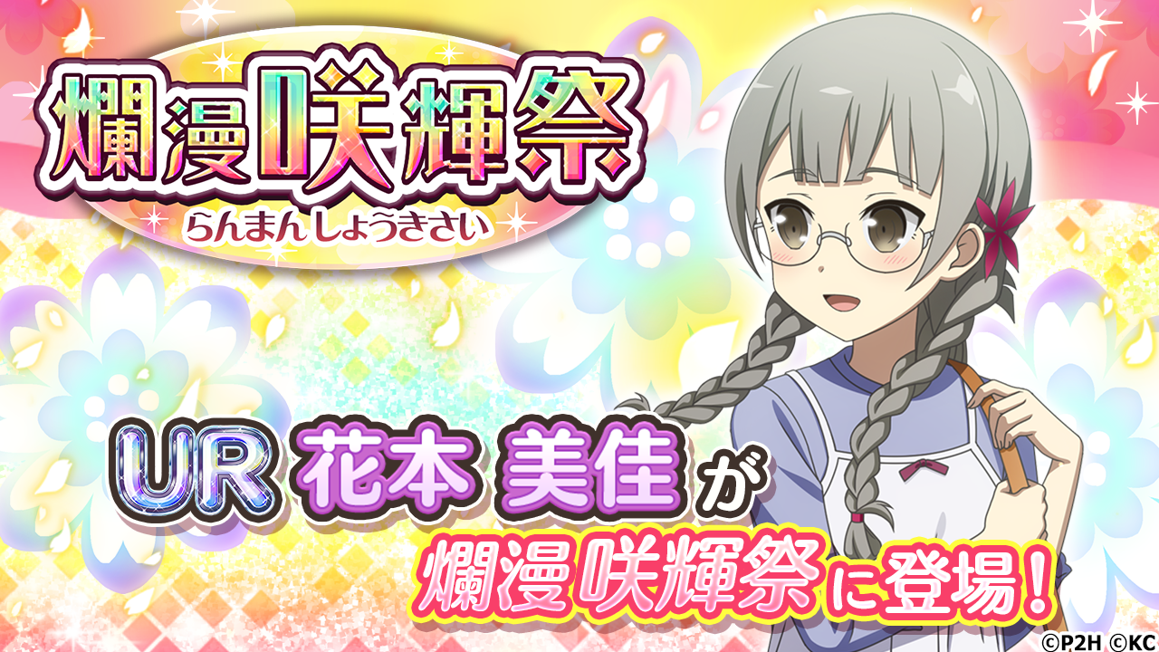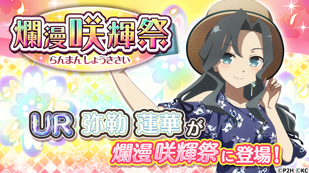 弥勒蓮華と花本美佳がURとして新登場するガチャが、それぞれ別の爛漫咲輝祭にて同時開催!赤嶺と出かけた先で一緒にブロマイドを撮る蓮華と、千景と2人きりのお出かけで緊張しっぱなしの美佳。2人のそれぞれの姿をお見逃しなく!