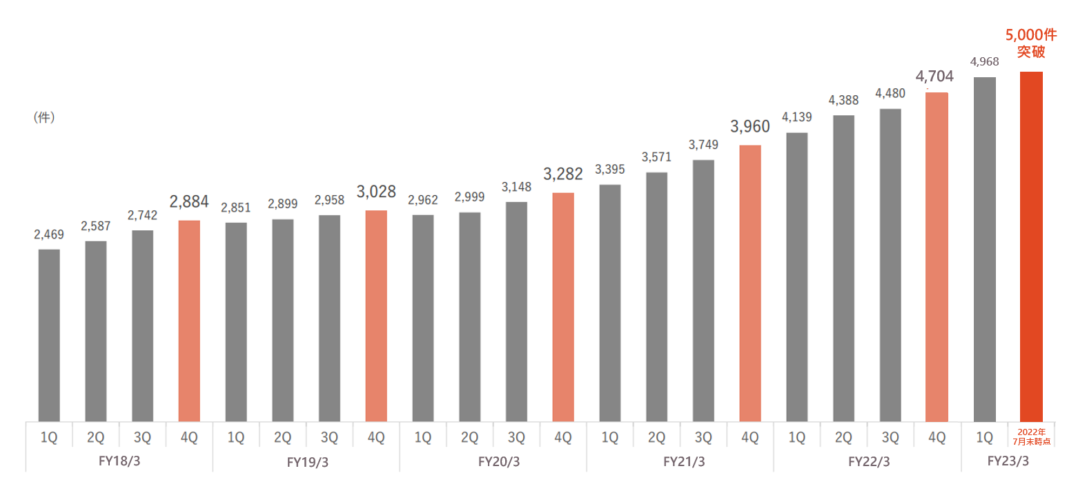 今回の有料契約件数5,000件突破は、前回の4,000件突破からわずか1年での出来事であり、4,000件突破までは2年程要したことを踏まえると、「NJSS」の認知拡大および、入札に対する民間企業のニーズが高まっていることが見てとれます。