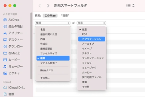 Step1:Finderの「ファイル」から「新規スマートフォルダ」をクリックします。