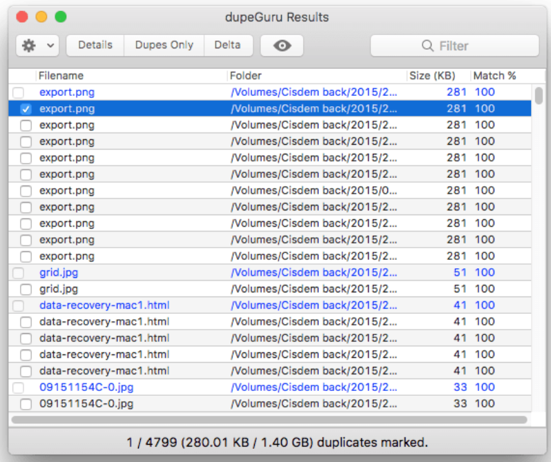 dupeGuru for MacはmacOS 10.12またはそれ以降に対応する重複写真削除フリーソフトで、無料かつオープンソースのソフトです。重複写真の削除と重複音楽の削除機能を有し類似画像にも対応できますが、プレビュー機能はなく、重複写真の検索速度が遅いといったデメリットがあります。