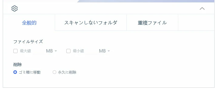 Step4:「全般的、スキャンしないフォルダ、重複ファイル」のタブをそれぞれ開いて、詳細を設定します。