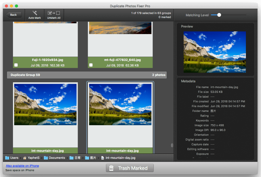 macOS 10.7またはそれ以降で使えるMacの重複写真削除ソフトDuplicate Photos Fixer Proは容量が少なくて軽いですが、大量の写真の検索には不向きです。Macの内蔵HDDと外付けHDDに対応し、2つの検索モードでは重複写真と類似画像を検出可能、検索前に設定をカスタマイズしフォーマットなどを指定できます。