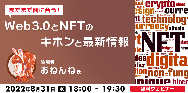 今回のセミナーでは、今年1月と5月のセミナーでも大好評だったNFTアーティストのおねんねさんに再度ご登壇いただきます。NFTの最新情報を中心に、Web3.0に関するここ1年の動きに関する基本的な情報から、実際におねんねさんが使っている細かなテクニックに至るまで、すぐに役立つ情報をお話していただきます。NFTやWeb3.0ビギナーの皆さまにもおすすめの内容です。