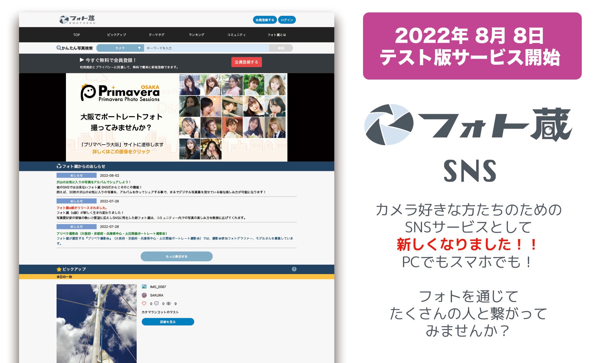 また、フォト蔵では東京と大阪において撮影会事業を展開しており、モデルとカメラマンを結び付け、ポートレートを愛する皆さんと、春夏秋冬、めぐる季節の作品づくりを楽しんでいただきたいと考えております。