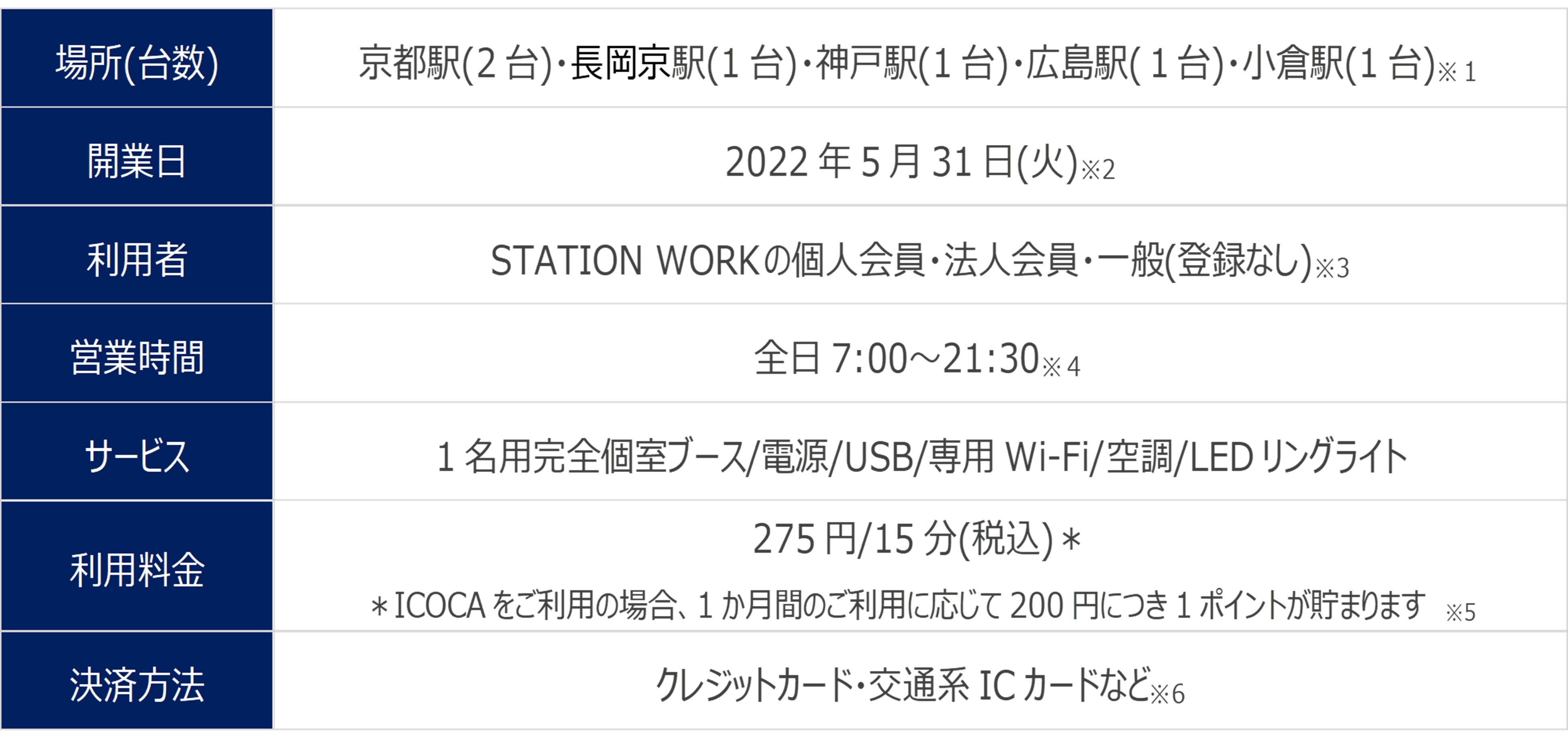 ※4 京都駅のみ7:00~20:45となります。年末年始や設備点検時など、予告なく休業となる場合があります。あらかじめご了承ください。