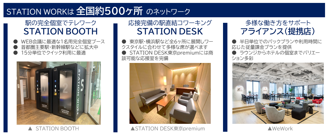 JR西日本エリアに展開している「STATION BOOTH」は、関西にお住まいのお客さまにはもちろんのこと、関東からの出張時など、多様なワークスタイルに活用されています。