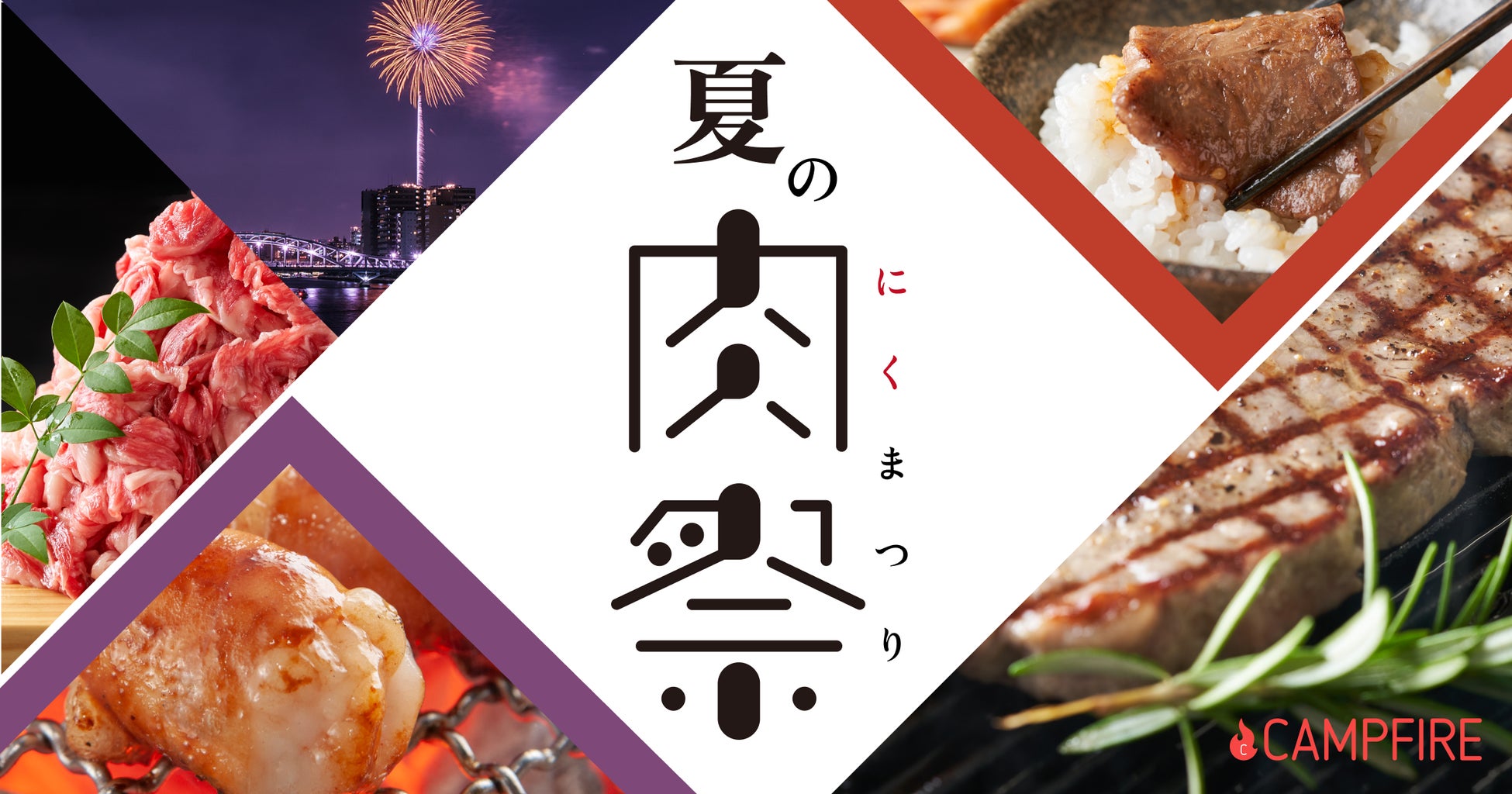 この度、「CAMPFIRE」の中でも多くの割合を占める飲食領域のうち、厳選された数々の美味しいお肉のクラウドファンディングを一堂に集め、安心して購入できる場を提供すべく「夏の肉祭り」を開催いたします。今後もCAMPFIREは、「一人でも多く一円でも多く、想いとお金がめぐる世界」を目指し、クラウドファンディングを通じた新たな出会いの創出を目指し、様々なセクターの方と協力してまいります。
