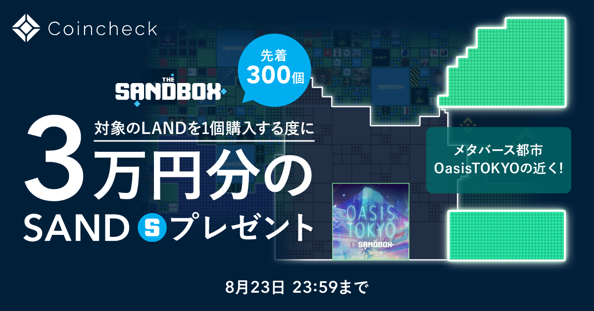キャンペーン期間内にCoincheckが出品している『The Sandbox』内の土地「LAND」を購入された方(先着300個)