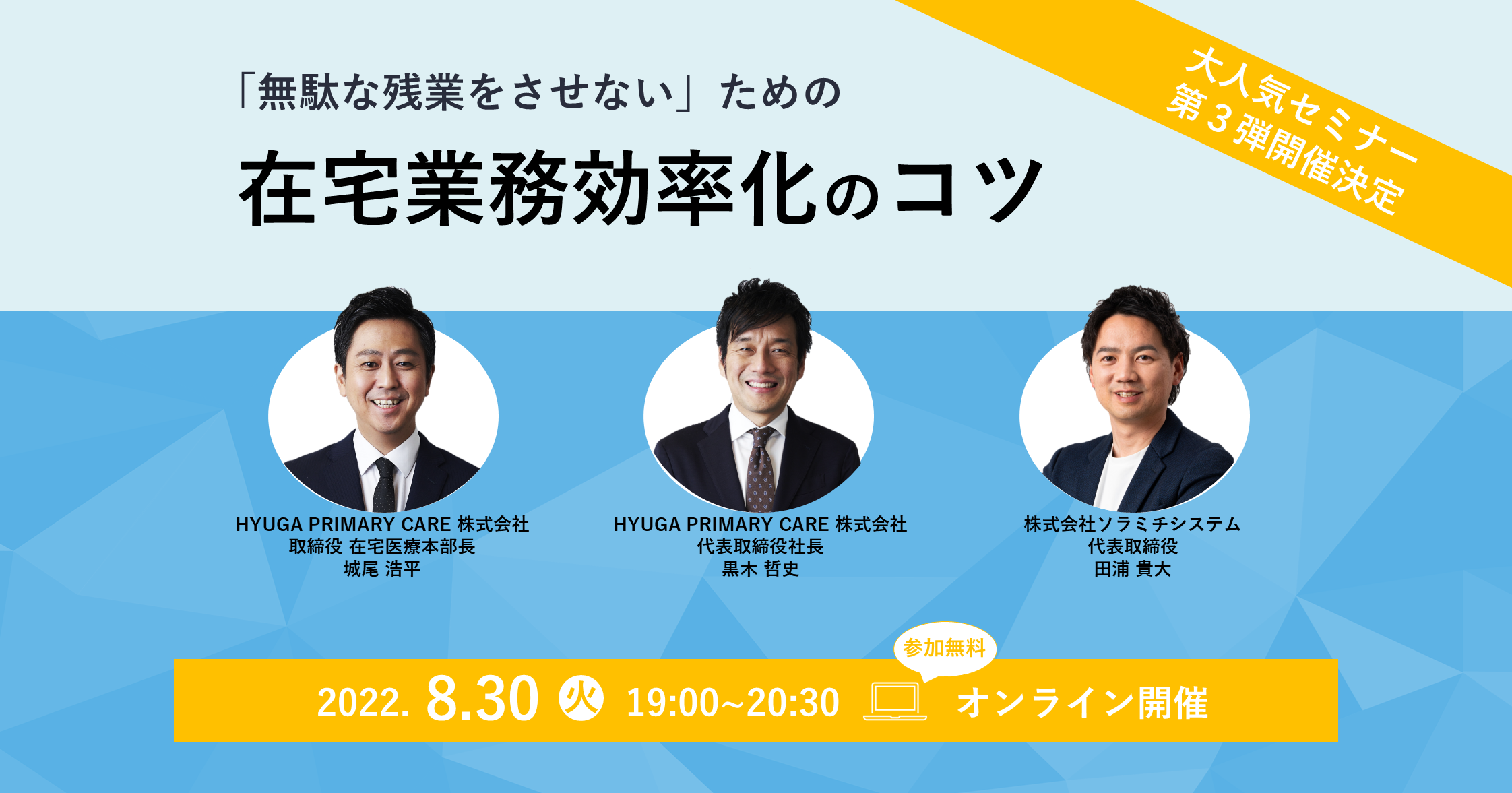 薬剤師による在宅訪問を実施している患者数が現在7,800名超で、1店舗当たりの在宅訪問患者数が200名以上の実績を持つ※HYUGA PRIMARY CARE社と、在宅訪問を行っている薬剤師にも活用されているクラウド電子薬歴『CARADA 電子薬歴 Solamichi』を展開するソラミチシステムが、「時間がかかる」「作業が多い」と言われている在宅業務を効率化するコツを紹介します。