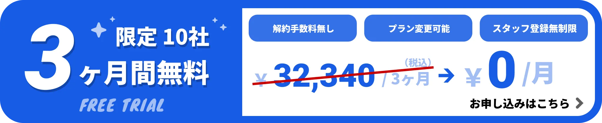 - 月額利用料 9,800円/月 → 0円/月(3ヶ月間)