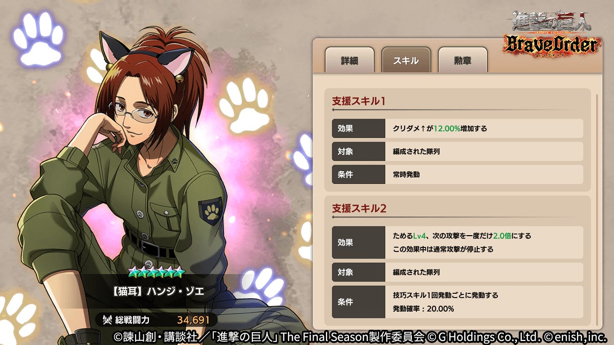・【猫耳】ハンジ・ゾエ/後衛/攻撃型