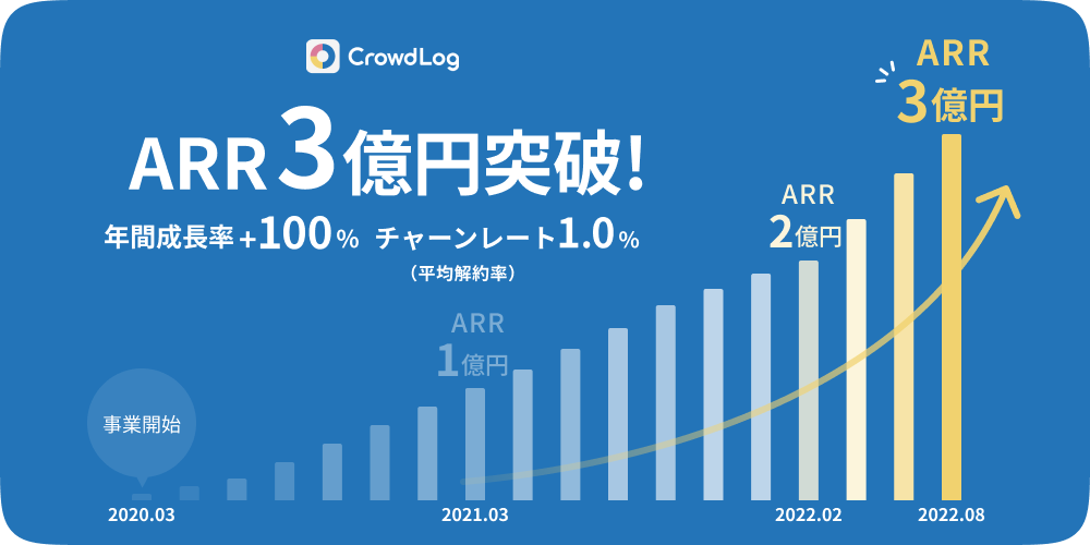 ARR1億円から2億円までの増加期間が11ヶ月であったのに対して、2億円から3億円までは6ヶ月と成長スピードが加速しております。またARRの年間成長率+100%、チャーンレート1.0%と継続性を持った上で著しい成長を遂げています。
