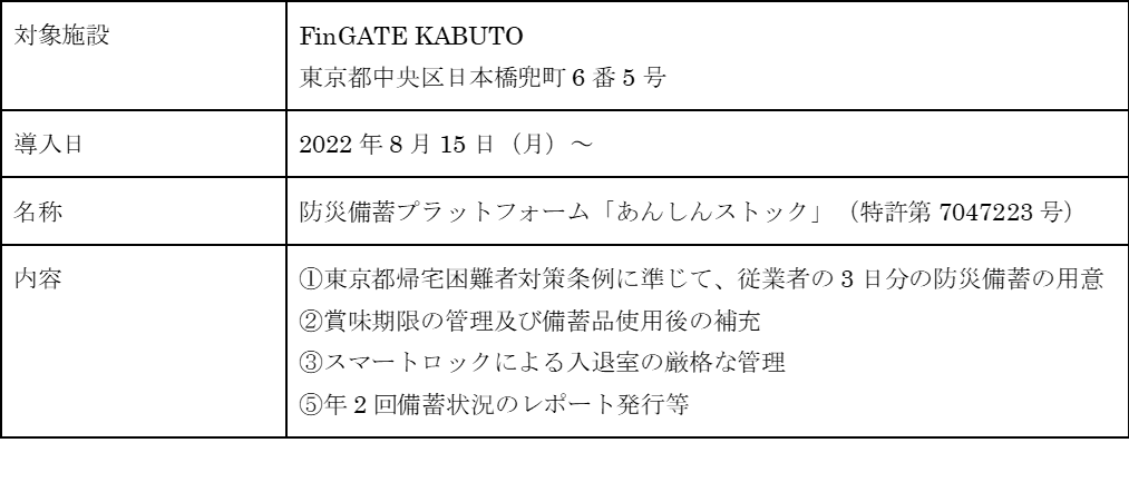 ・東京ダイヤビルディング(東京都中央区新川)で防災備蓄プラットフォーム「あんしんストック」によるあんしんして生活できる街づくりの実証実験を開始