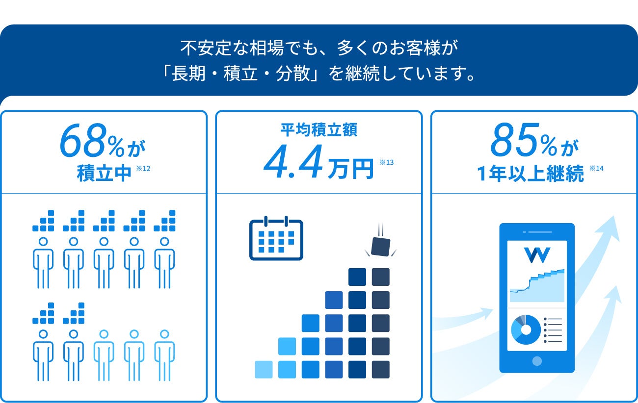※13 2022年6月30日時点。預かり有価証券の残高がある口座において、月間積立設定金額を積立設定のある口座数で割って算出(小数点第2位を四捨五入)
