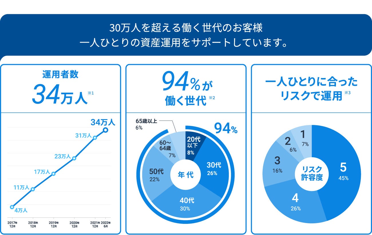 ※1 2022年6月30日時点の運用者数(1万人未満は切り捨て)。「運用者」とは1円以上の預かり資産がある顧客を指す。
