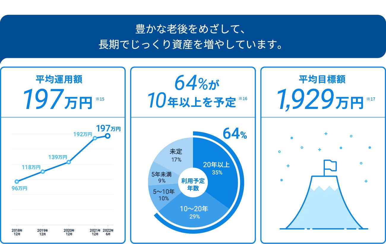 ※17 2022年6月30日時点。ライフプラン設定済み運用者の「必要な老後資金」の平均値(小数点第1位を四捨五入)