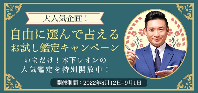 TV番組「突然ですが占ってもいいですか」で人気を博している、木下レオンの公式占いサイト『木下レオンの占い』では、「お試し鑑定キャンペーン」を開催中!
