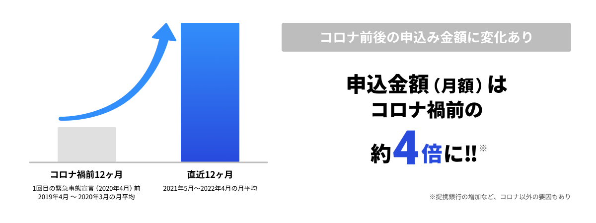 コロナ禍で資金繰りに困る中小企業様が増えていること、コロナ禍の非対面ニーズにマッチすることなどから、「OLTAクラウドファクタリング」を利用される企業様は急激に増加しています。(下図)