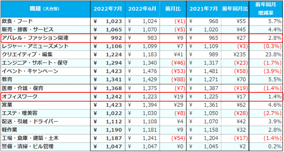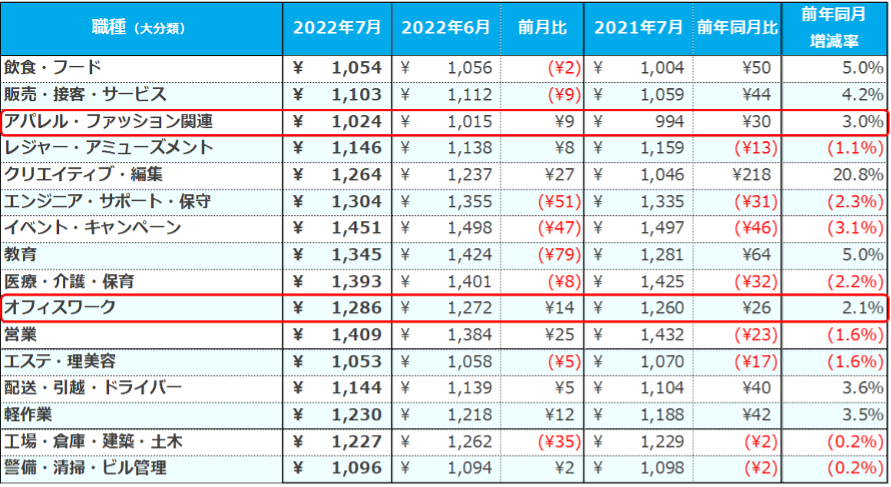 『2022年7月度 アルバイト・パート平均時給レポート』