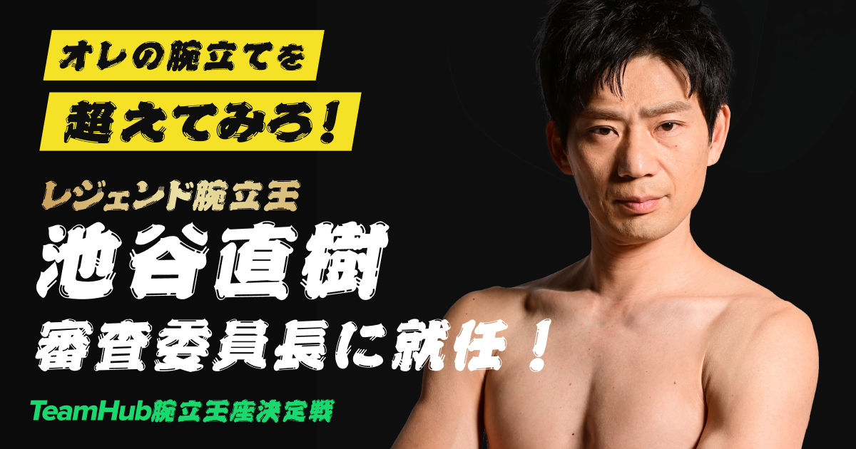 これまで有名スポーツバラエティ番組などで幾度も腕立て伏せを披露し、最強の名をほしいままにしてきた、スポーツタレントの池谷直樹さん。この度本企画にご賛同いただき、「TeamHub腕立王賞」を決める審査委員長として就任しました。
