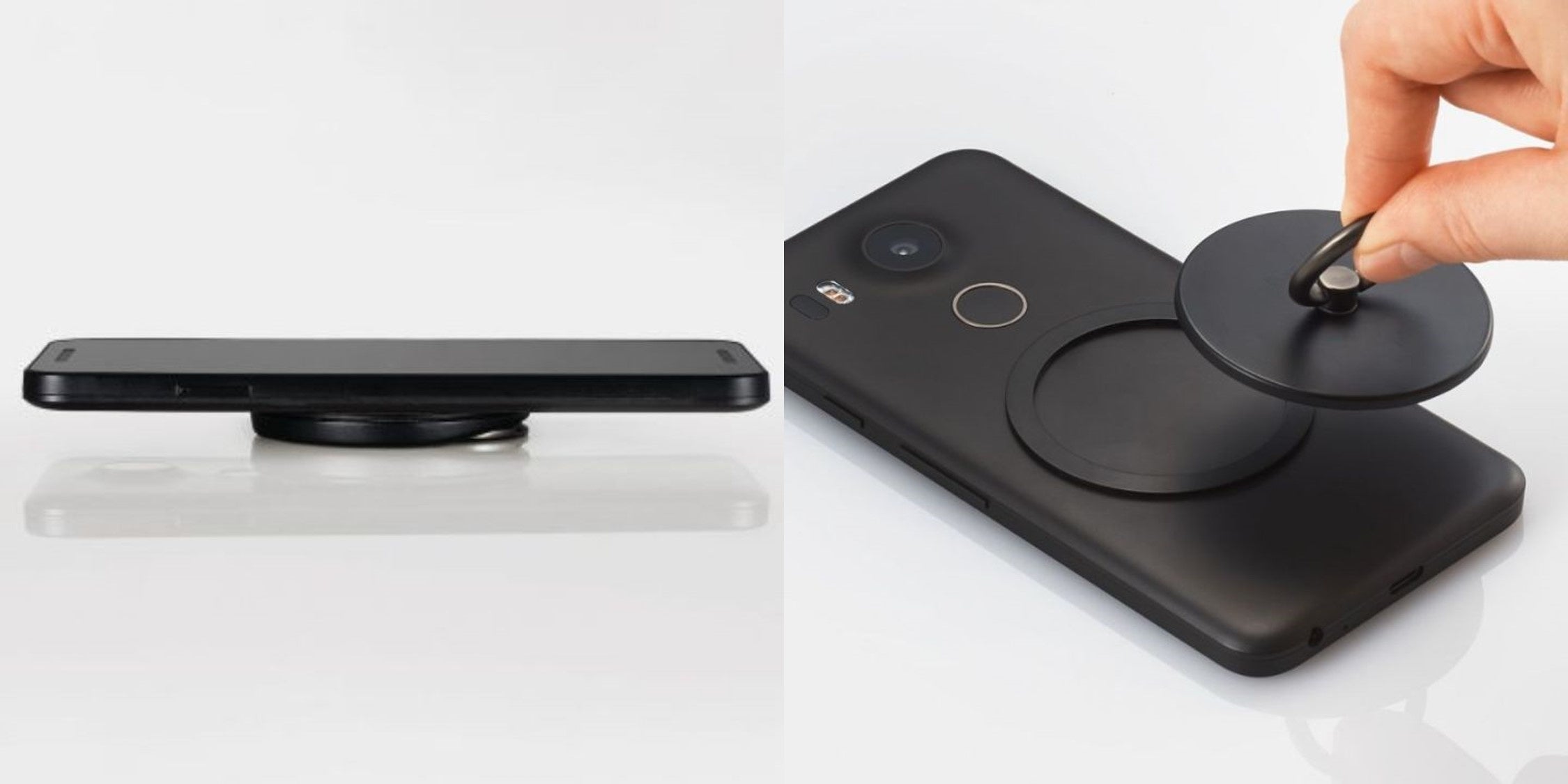 <マグネットスマホリング/フラット/メタルプレート付属ブラック>