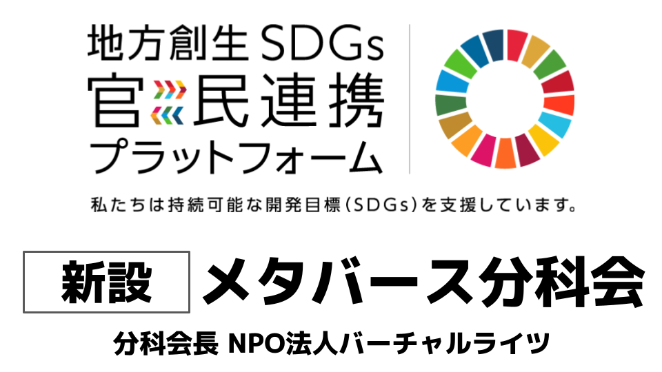 メタバース分科会では、メタバースを活用した地方創生、SDGs課題解決のベストプラクティス創出を行うとともに、地方創生、SDGs課題解決に向けた先端分野の人材交流を行います。また、メタバースネイティブによる事例勉強会を行い、地に足のついた議論を促進します。
