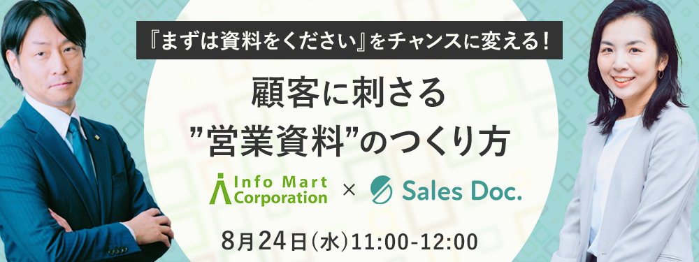 このセミナーでは、明日から使える顧客に刺さる”営業資料”のつくり方について、インフォマート社と共催でお話しいたします。