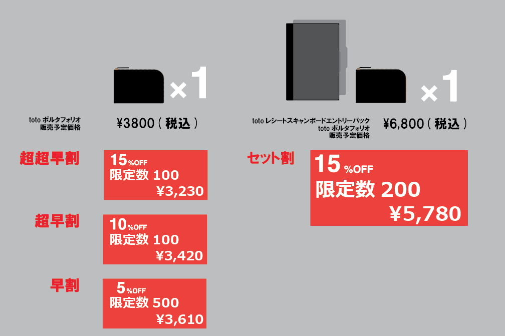 また、期間中は同じく新発売となるレシートを入れていい財布「toto ポルタフォリオ」も先行販売を受け付けております。