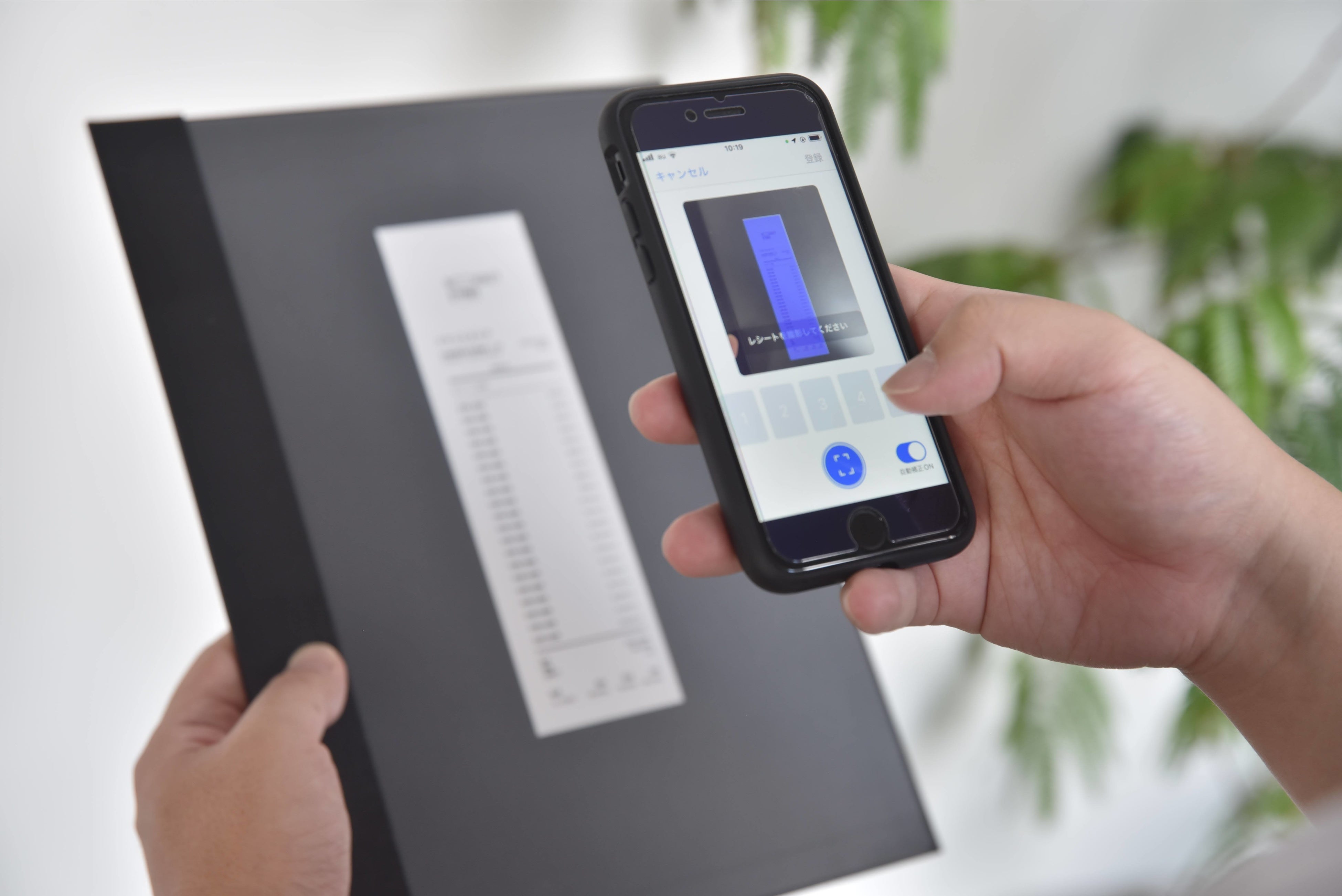 レシートの背景は黒色で構成されているため、スマートフォンのアプリでもレシートの輪郭が認識しやすく、スピード感をもってレシートの撮影が可能となっています。