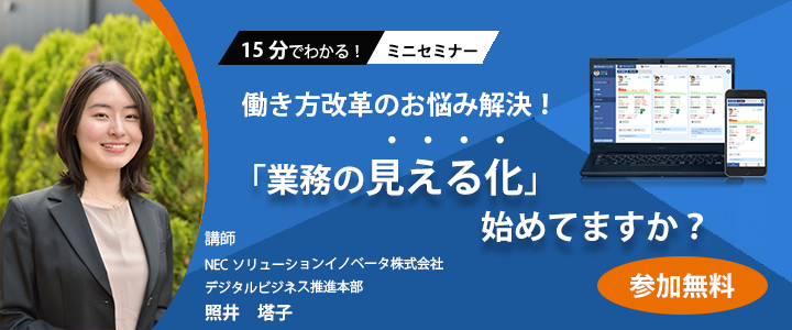 - 働き方改革関連法案やテレワークでのチームマネジメント課題は「業務の見える化」で解決!